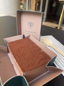 La vera novità si chiama Lingotto, il Tiramisù da passeggio: una forma compatta, elegante e pratica, pensata per chi vuole godersi l’eccellenza trevigiana anche camminando. Nessun compromesso sulla qualità: savoiardo artigianale, caffè specialty estratto con la moka, crema al mascarpone vellutata e una spolverata di cacao amaro.