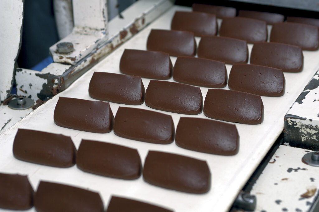 Deve passare ancora del tempo però, e non poco, perché quella meraviglia di sapore trovi un nome. Ancora a Torino, nel 1865, a Carnevale un attore travestito da Gianduja, maschera della città, distribuisce ai passanti un dolcetto avvolto nella carta. È il primo cioccolatino della storia ad essere incartato singolarmente: si chiama Givù, ma offerto da Gianduja ci mette un attimo a diventare quello che resterà nel futuro: il Giandujotto. Realizzato a mano, nei primi tempi; poi, nel Novecento, il bivio: restare fedele ai gesti lenti dei maestri torinesi, o farsi strada nelle linee produttive dell’industria? Entrambe le cose. L’erede diretto della tradizione è il metodo a estrusione, che prevede che il composto venga deposto su una piastra senza stampi, lasciando che la sua forma esca guidata dalla mano del pasticciere a guidarla. Il metodo a concaggio, invece, utilizza stampi che modellano i pezzi in serie, tutti uguali.