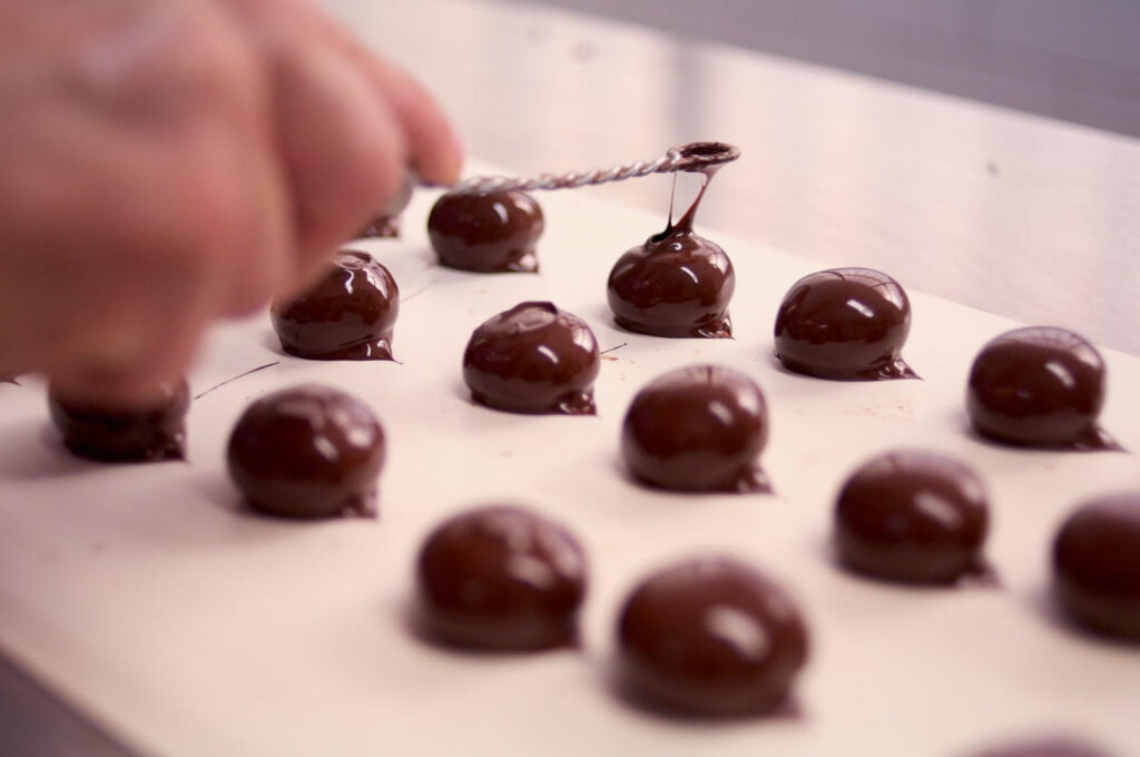 Dire Giovanni Galli significa dire marron glacé, perché questa è la più nota tra le produzioni del laboratorio: una produzione basata sulle migliori castagne in commercio, dalla zona dell’Irpinia, e portata avanti come si faceva agli albori del Novecento, quando la canditura era una necessità per la conservazione. Le castagne vengono pulite, insacchettate, bollite e poi sottoposte alla canditura con acqua, zucchero e glucosio. Dopo una decina di giorni di riposo su una griglia, vengono glassate e solo a quel punto, al banco o confezionati uno ad uno e racchiusi in eleganti scatole, i marron glacé sono pronti per la vendita. Tra i pochi al mondo completamente artigianali, a Milano sono un rito: già nel secolo scorso nel tempo tra le due guerre erano per la borghesia l’irrinunciabile dolce della domenica. La loro fama, e la loro bontà, erano tali da aver raggiunto Casa Savoia: la pasticceria dal 1942 potè fregiarsi del brevetto della Real Casa. Ma lo stesso anno portò anche distruzione. La pasticceria fu bombardata e Ferruccio, figlio del fondatore Giovanni, riuscì a salvare solo il bancone e le vetrine, gli stessi che oggi accolgono i clienti in quello che è diventato Corso di Porta Romana. Qui, il negozio è stato riaperto nel 1946 di fronte alla sede storica; nello stesso periodo, sono stati aperti una seconda pasticceria, in via Victor Hugo, e il laboratorio in via Vannucci.