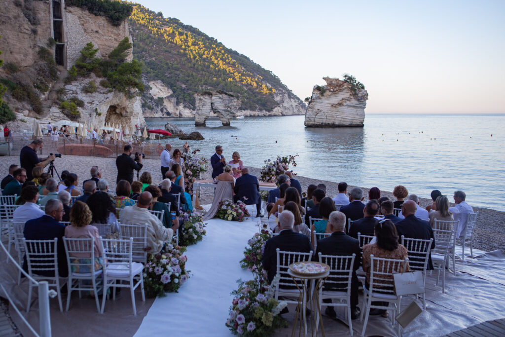 In Puglia, la Baia dei Faraglioni nel Gargano attira coppie da Australia, Stati Uniti, Sud America e Asia. Sulla Costiera Amalfitana, il Lloyd’s Baia Hotel incanta chi cerca un matrimonio chic a picco sul Golfo di Salerno: qui c’è la spiaggia privata, che si raggiunge con un ascensore panoramico che regala agli ospiti un ingresso spettacolare. Il rito si celebra in riva al mare, avvolti dal suono delle onde.