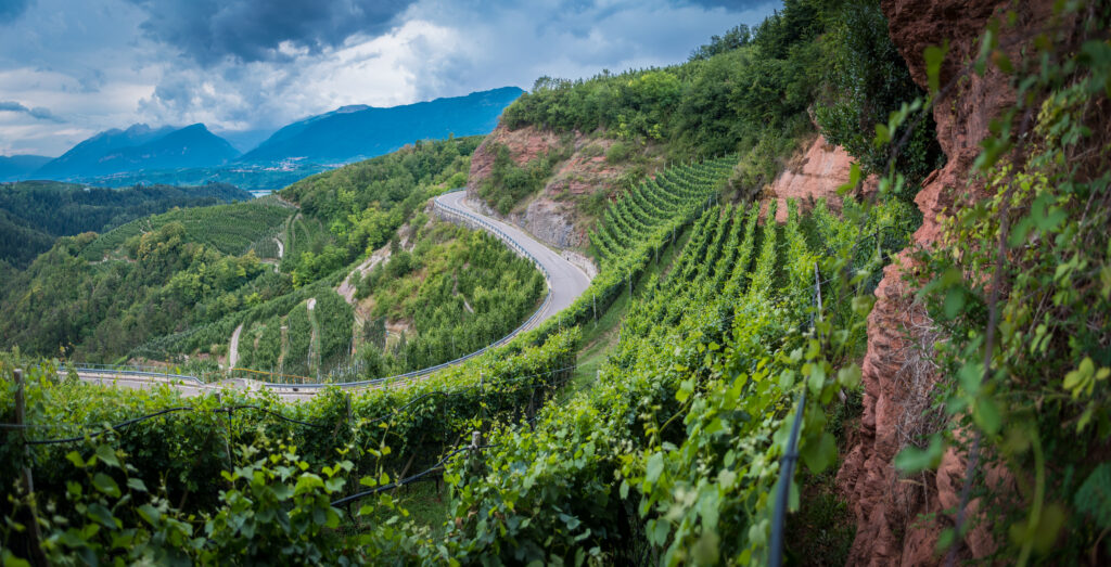 Se si hanno due ore a disposizione un altro facile percorso parte dal centro di Romallo con panorami accattivanti sul lago di Santa Giustina, la cascata del canyon Novella e sulle Dolomiti di Brenta. Si attraversano i meleti con la possibilità di scattare belle immagini su una valle che in primavera appare come un giardino. Un’isola può apparire il vigneto di Silvia Tadiello, «un ettaro in cui coltiviamo soprattutto Groppello su terreni ripidi di roccia rossa che dà il nome all’azienda stessa, Laste Rosse» afferma. Quella della sua famiglia è una delle cinque che coltivano Groppello di Revò, un’uva particolarmente adatta a vini longevi grazie alla elevata acidità, «fattore che ci ha consentito di sperimentare anche la produzione di uno spumante metodo classico, sottile al naso e piacevole per le note speziate». Nelle più vecchie annate dei rossi si fanno evidenti i ricordi di terra bagnata e goudron (lasterosse.it).