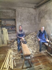 È poco distante a Taio il laboratorio dei fratelli Tullio e Rocco Tamè, 173 anni in due, tra nuvole di vapore e trucioli di bagolaro. Realizzano manici di frusta, attività un tempo fiorente, e sono rimasti tra i pochi al mondo. Tanto importante questa attività in valle da meritare l’apertura del Museo dei manici da frusta. «L’introduzione a Taio di questa specializzazione si deve a Simone Barbacovi che, nel 1830, fondò la prima fabbrica. Lo spirito imprenditoriale ebbe grande sviluppo nel decennio successivo, quando venne costruita la tratta ferroviaria Ala-Brennero, che facilitò la importazione della materia prima e lo smercio del prodotto finito» racconta Giorgio Chilovi, referente del museo. Anche se il suono ritmico degli zoccoli dei cavalli non è più diffuso come quel 1920 in cui si contavano 350 addetti, ci sono appunto ancora loro, i fratelli Tamè, che spaccano, squadrano e infilano i segmenti di bagolaro in tubicini di rame nei quali viene immesso il vapore per ammorbidire il legno e attorcigliarlo, renderlo eterno per i moderni cocchieri e i Goaslschnöllen, gli schioccatori di fruste sudtirolesi (visitvaldinon.it).