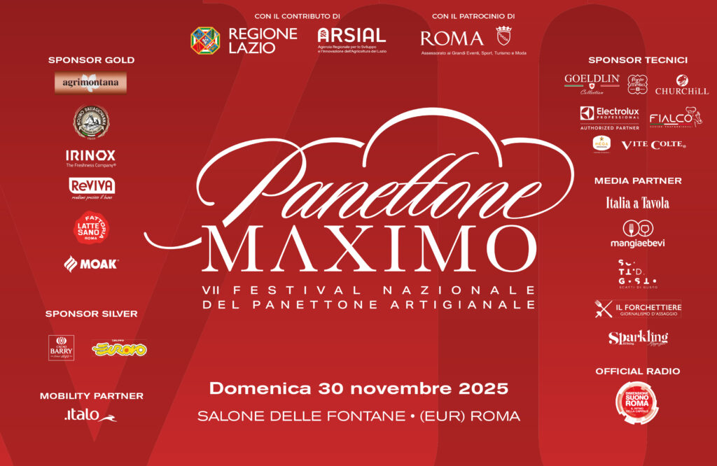 Domenica 30 novembre, nel Salone delle Fontane a Roma, si svolge la settima edizione di Panettone Maximo, festival nazionale del panettone artigianale ideato da Fabio Carnevali e organizzato da E20 Events Factory e Ristoragency, con il contributo della Presidenza della Regione Lazio e dell’ARSIAL e il patrocinio dell’Assessorato ai Grandi Eventi del Comune di Roma.
