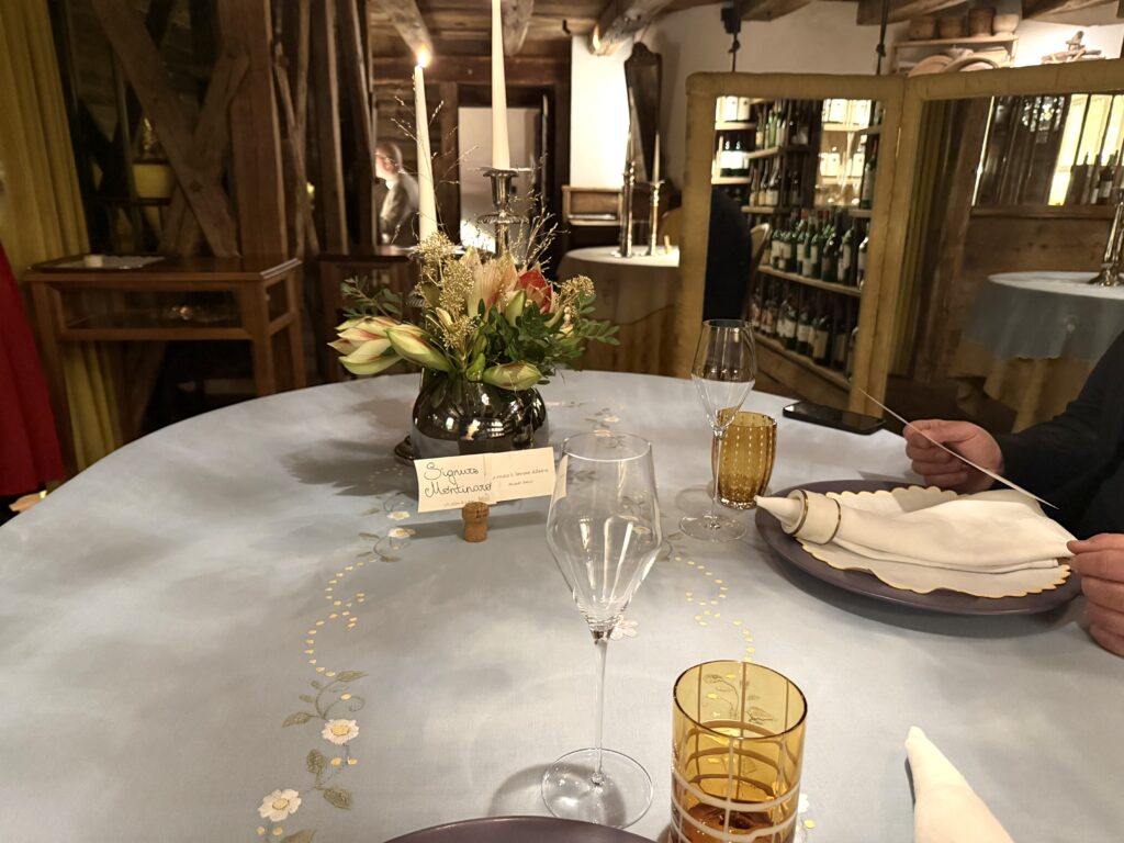 Il servizio è perfetto, e vede oggi il sorridente Giancarlo Di Stefano al comando. Mentre la cantina, che continua a essere una delle più emozionanti al mondo, viene gestita con attenzione dal giovane Francesco Calderaro (che ben ha appreso il mestiere dal suo maestro: Paolo Baraldi).